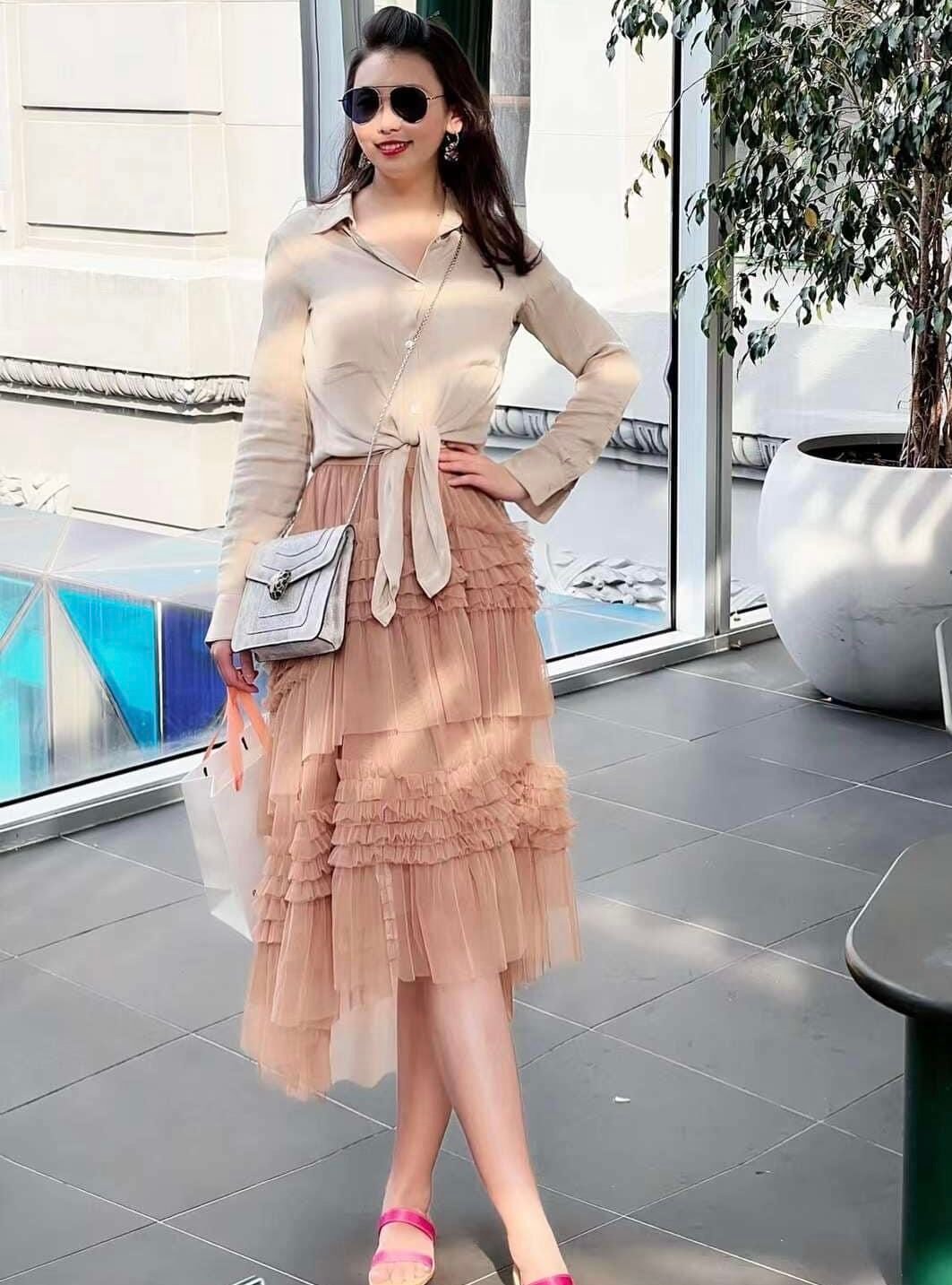 Mullet Flow - Khaki - Layered Tulle Skirt